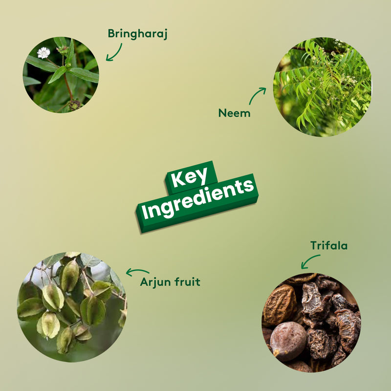 Bringharaj, Trifala, Neem, Arjuna, Seasme, Mainphal, Piyabansa, Giloy, Kamalnaal, salparni/sarivan, camphor, shikakai